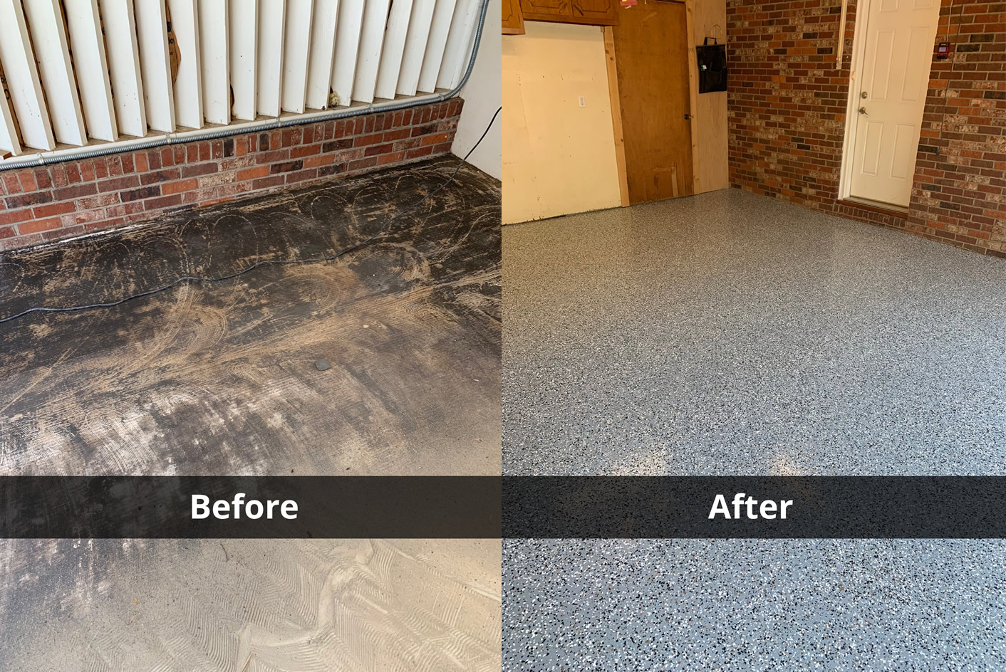 We use industrial grade PPG products exclusively and a two-coat process (two-part epoxy with a catalyzed urethane top coat). This process is perfect all applications and creates a permanent, beautiful floor that resists both dirt and chemicals.