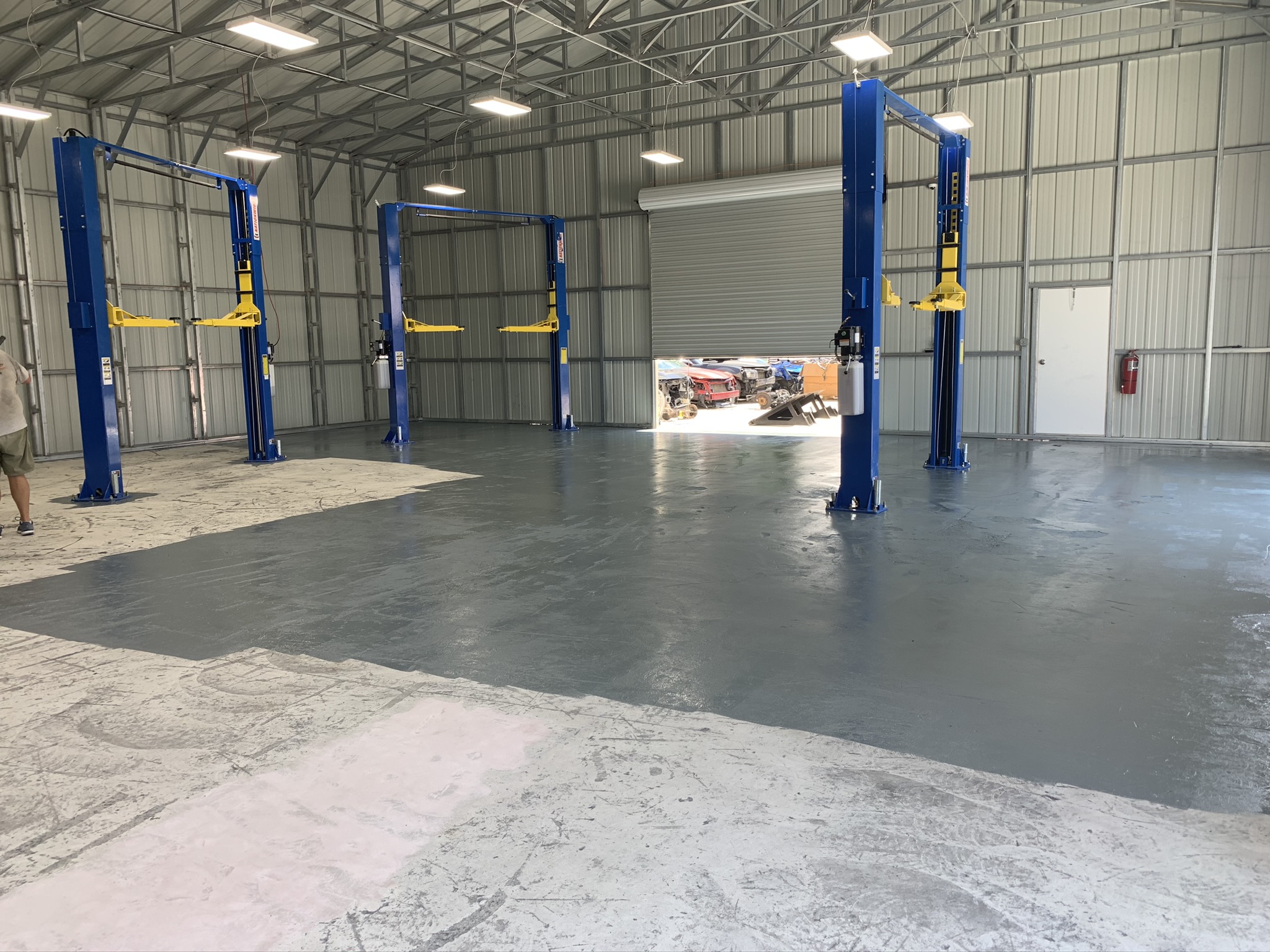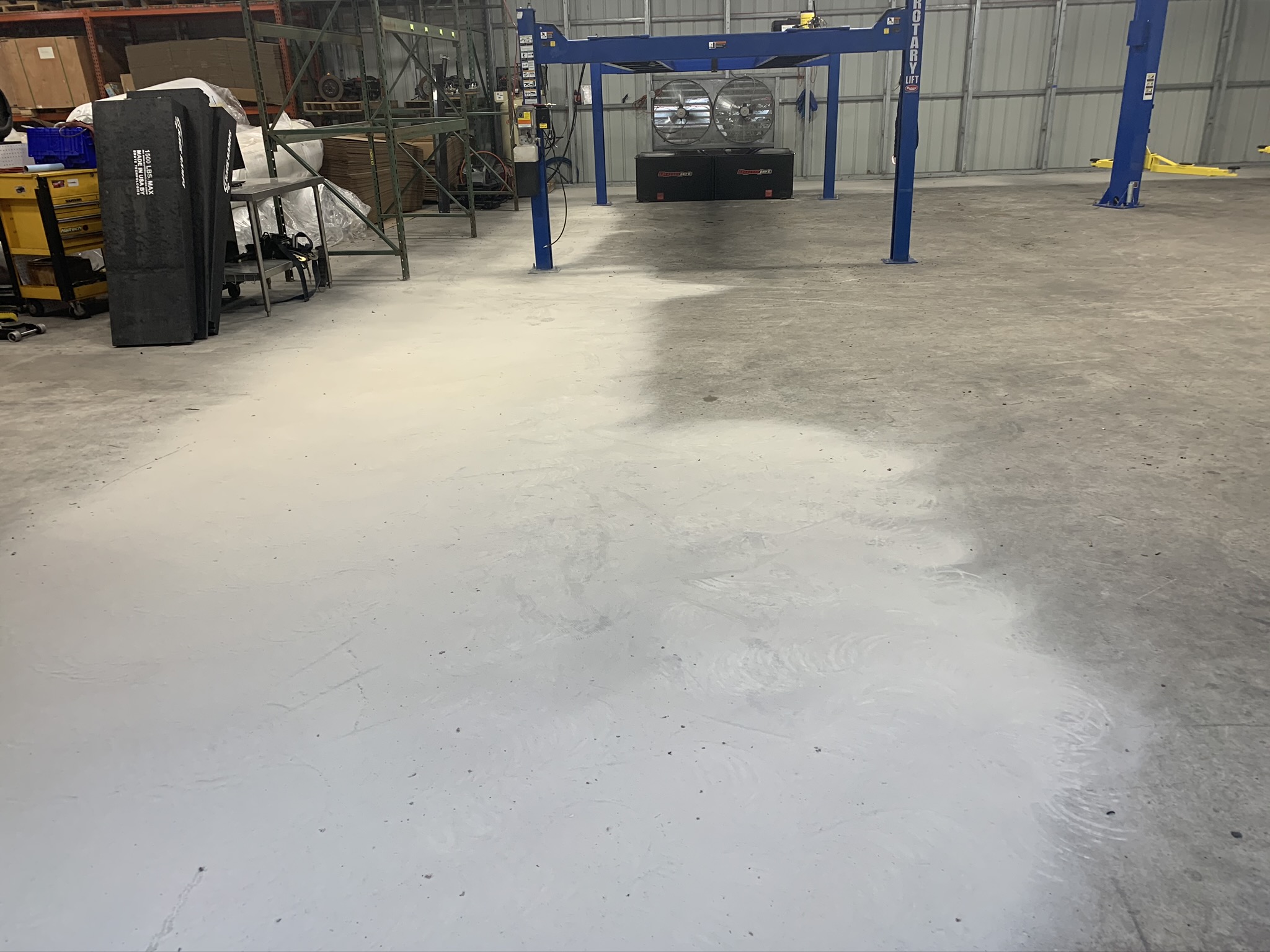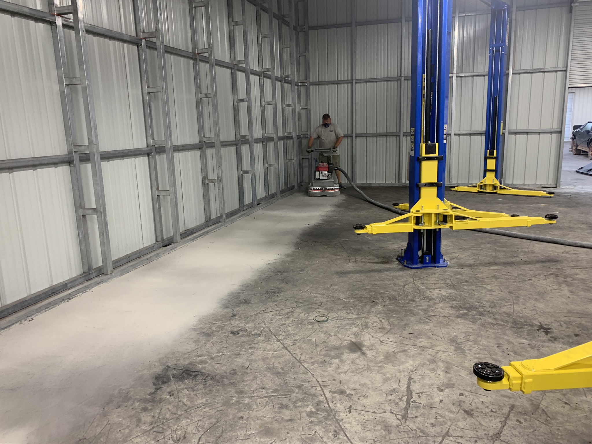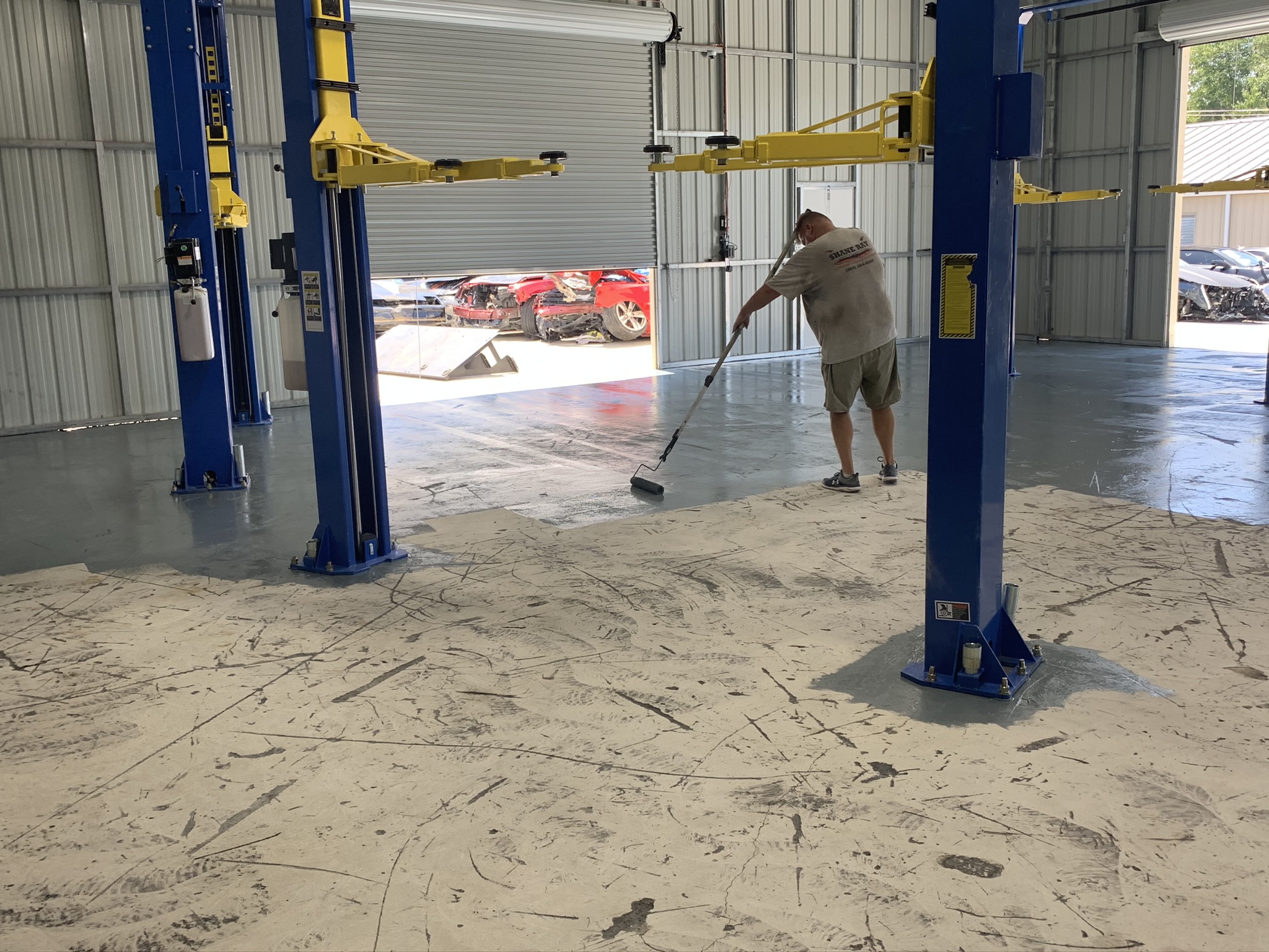 We carefully prepare your floor using a dual-head concrete grinder with dymacerts to scarify the top layer of concrete. This ensures the paint sinks into the concrete and lasts for years.